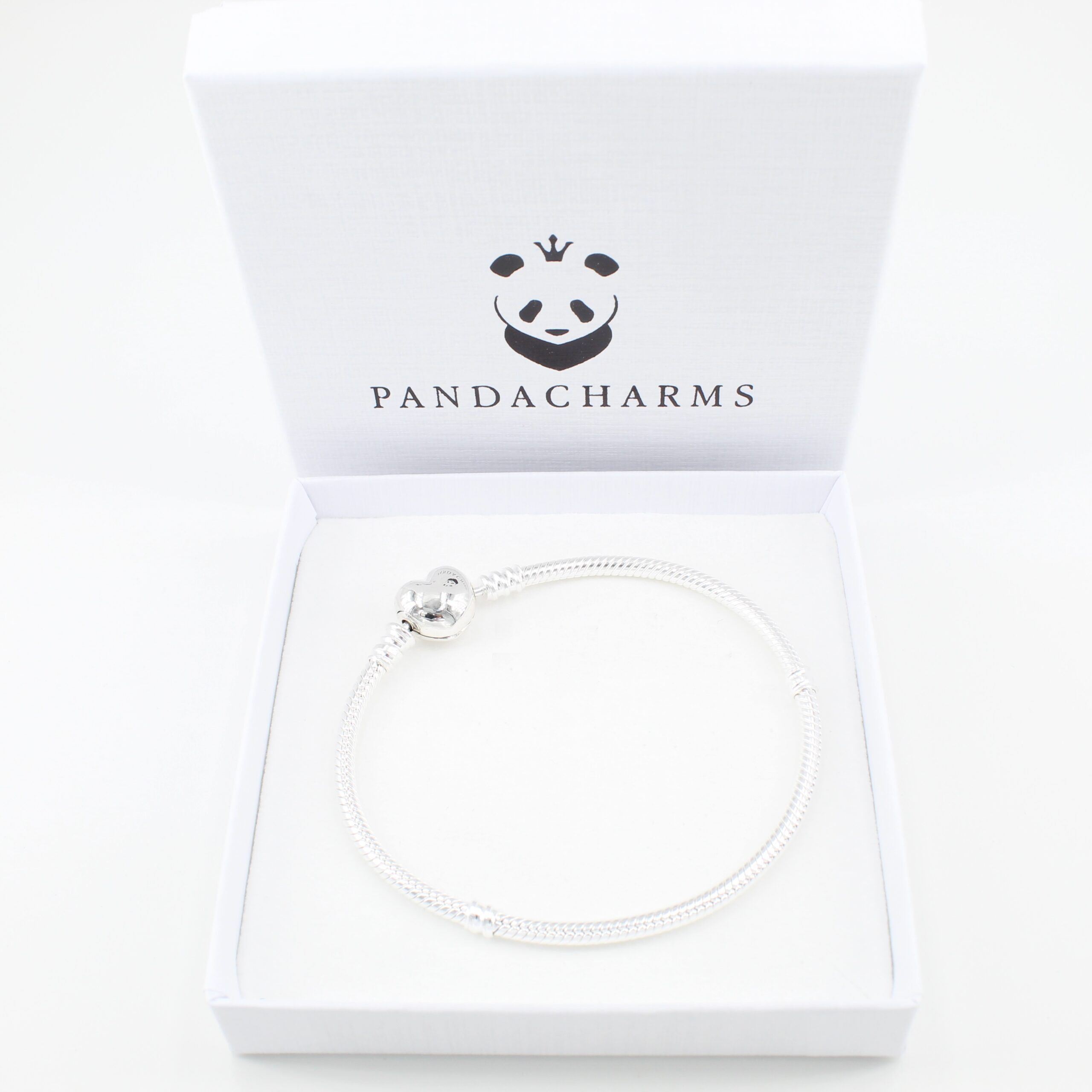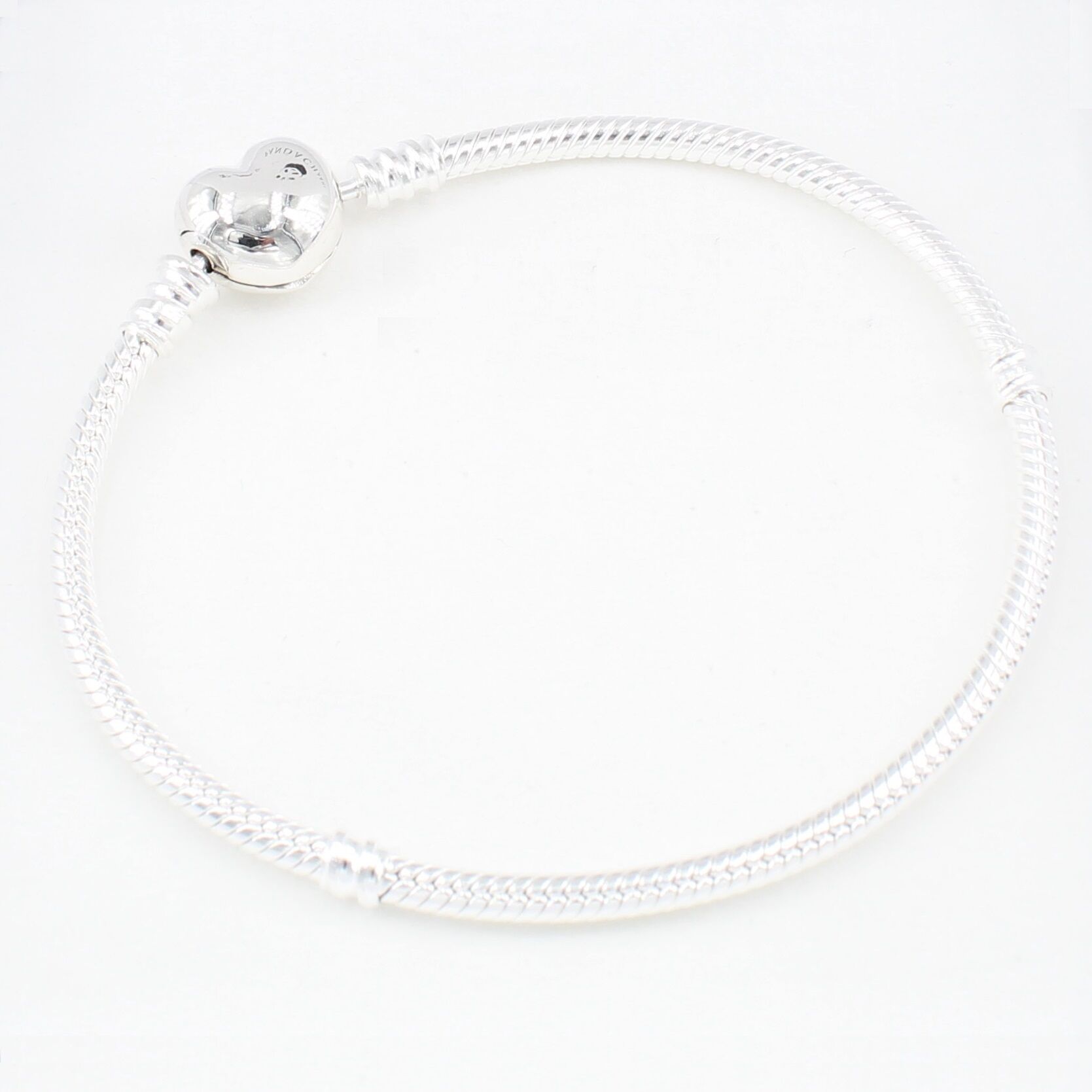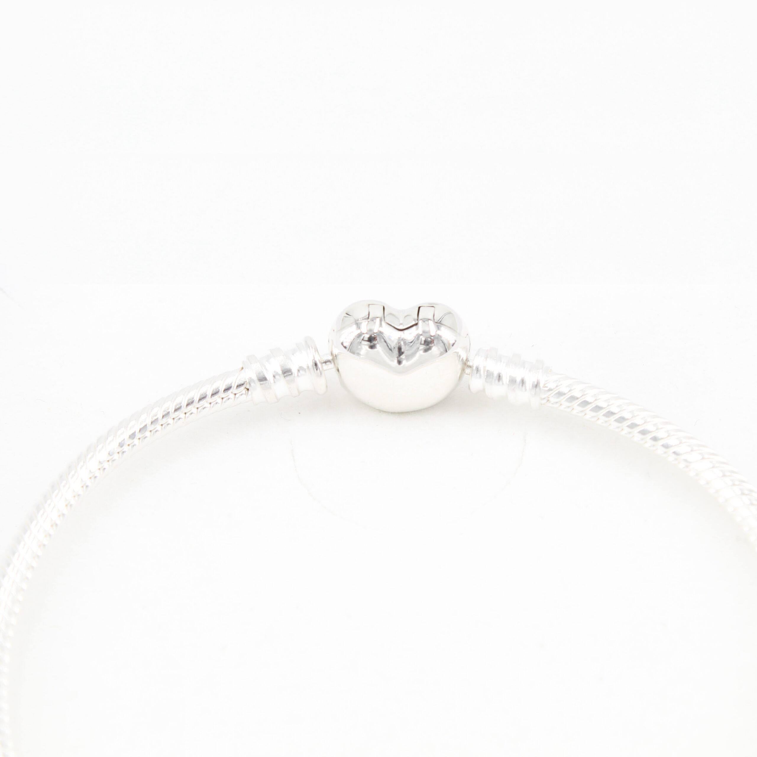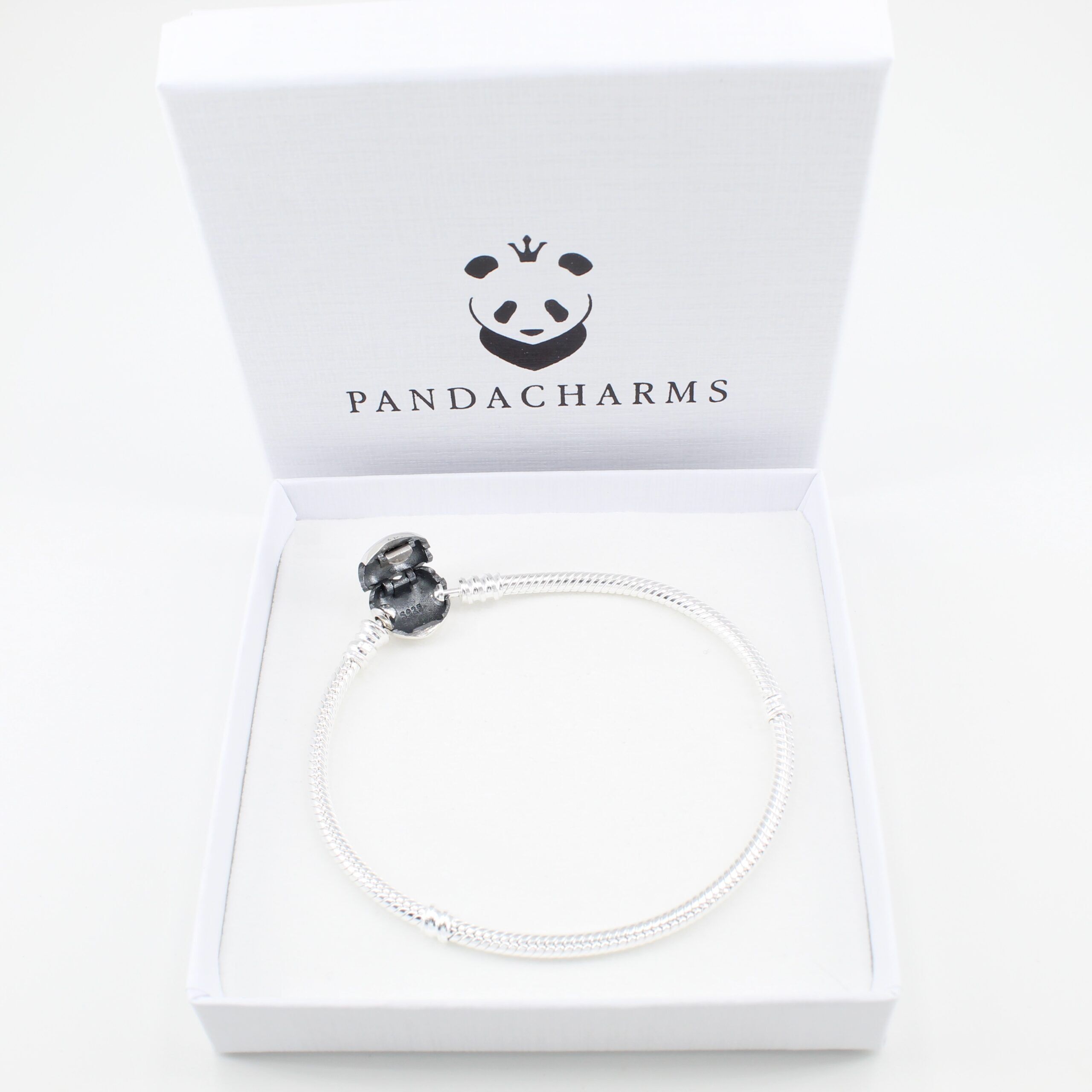 Unsere Charm Armbänder lassen wir ausschließlich aus hochwertigem 925er Sterling Silber fertigen, der Silbergehalt ist anhand des Feingehaltsstempels im Armbandschloss dokumentiert. Das Armband ist ein Schlangen-Gliederarmband und ist mit einem Verschluss in Herzform versehen, das sich an der Einkerbung mit dem Fingernagel leicht öffnen lässt. Ein Gewindesystem unterteilt das Armband in drei Bereiche.