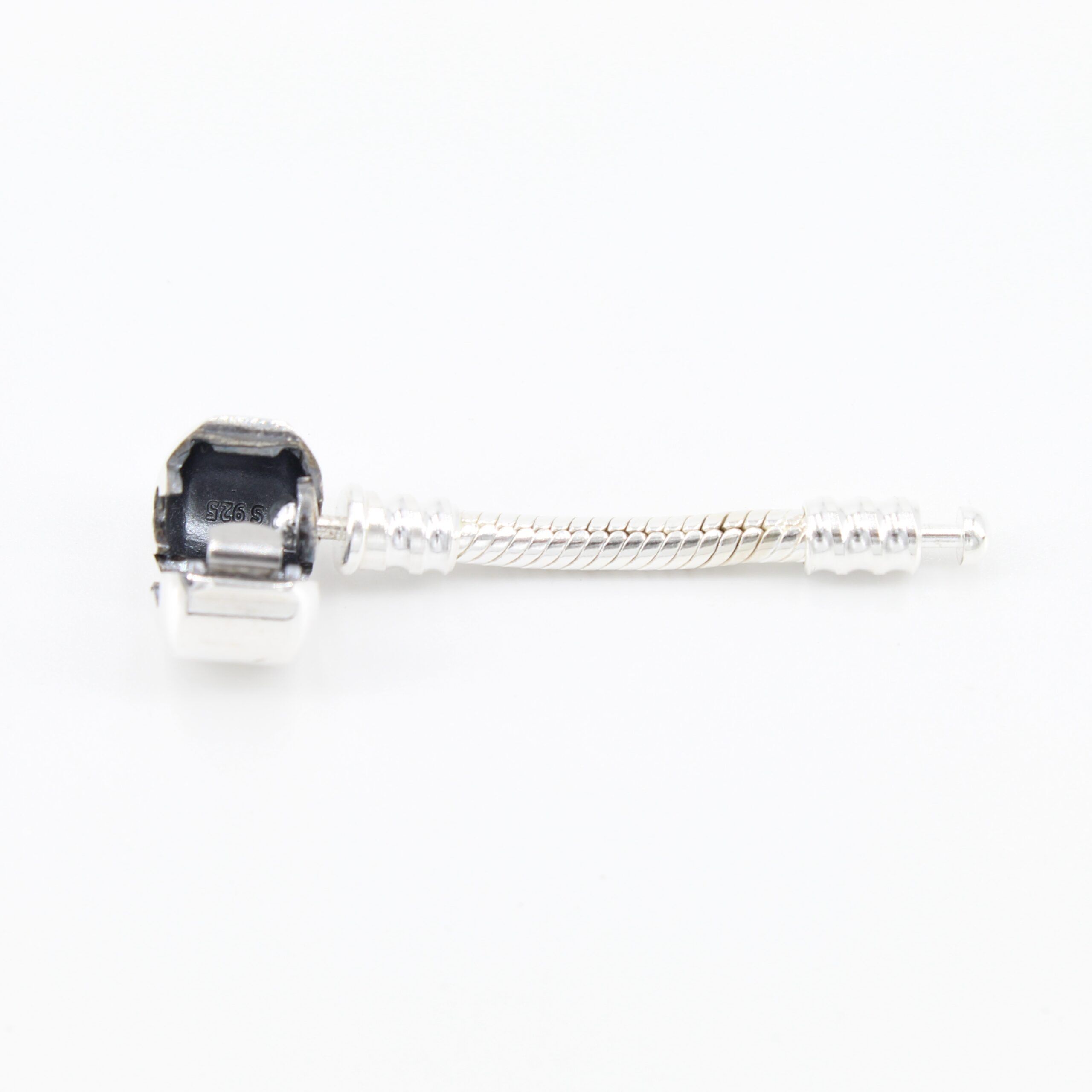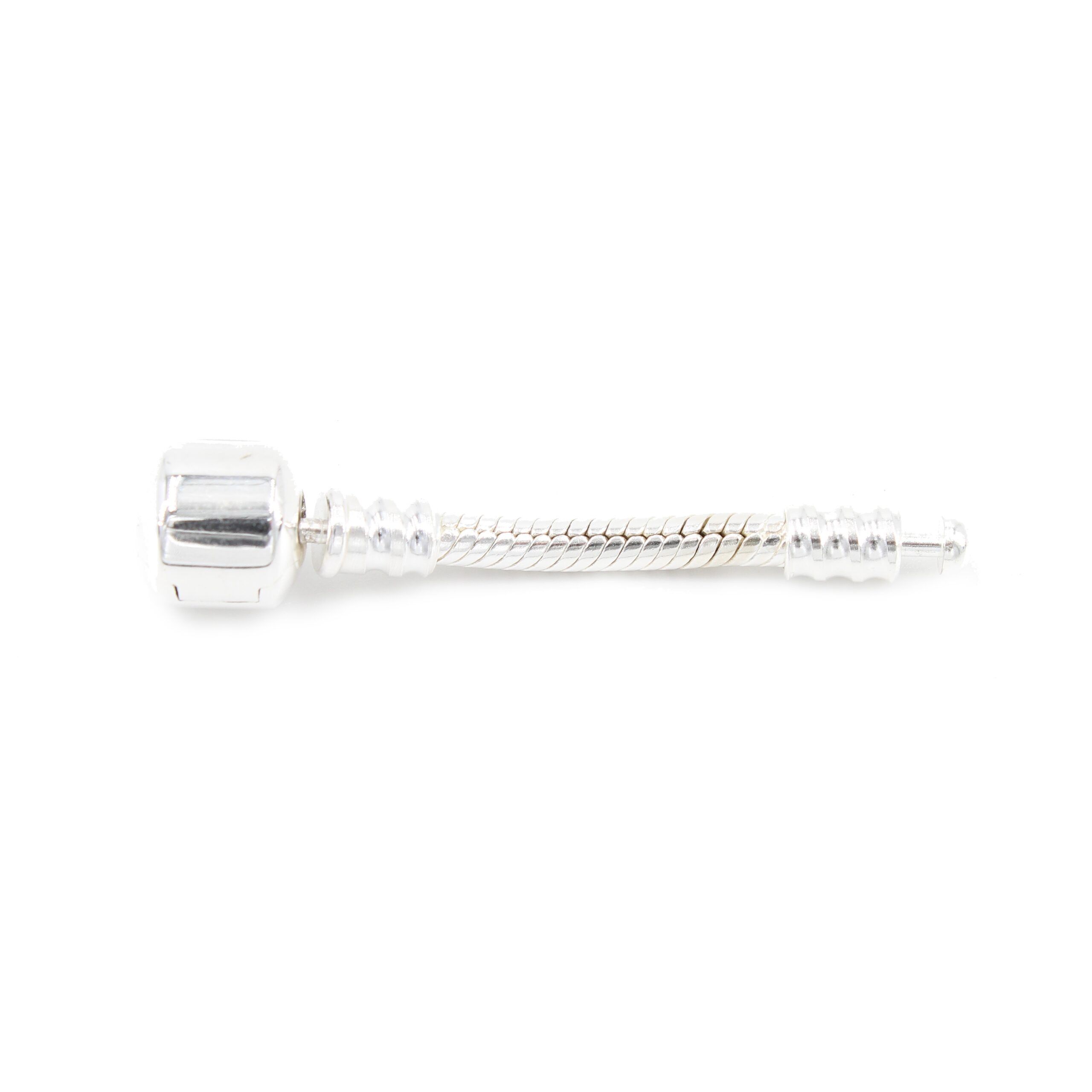 Unsere Charm Armband Verlängerungen lassen wir ausschließlich aus hochwertigem 925er Sterling Silber fertigen, der Silbergehalt ist anhand des Feingehaltsstempels im Armbandschloss dokumentiert. Die Armband Verlängerung ist ein sehr kurzes Schlangen-Gliederarmband mit einem Gewinde und mit einem Zylinderschloss, das sich an der Einkerbung mit dem Fingernagel leicht öffnen lässt.