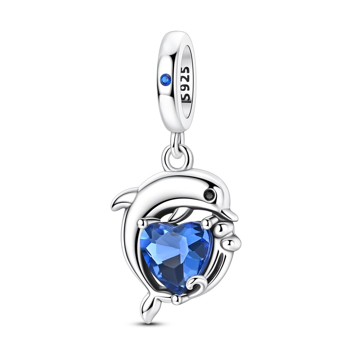 Der Delfin mit Blauem Herz Charm Anhänger vereint verspieltes Design mit tiefer Bedeutung. Der elegante Delfin umschließt ein strahlendes blaues Herz und symbolisiert Freiheit, Lebensfreude und emotionale Verbundenheit – inspiriert von der Magie des Meeres.