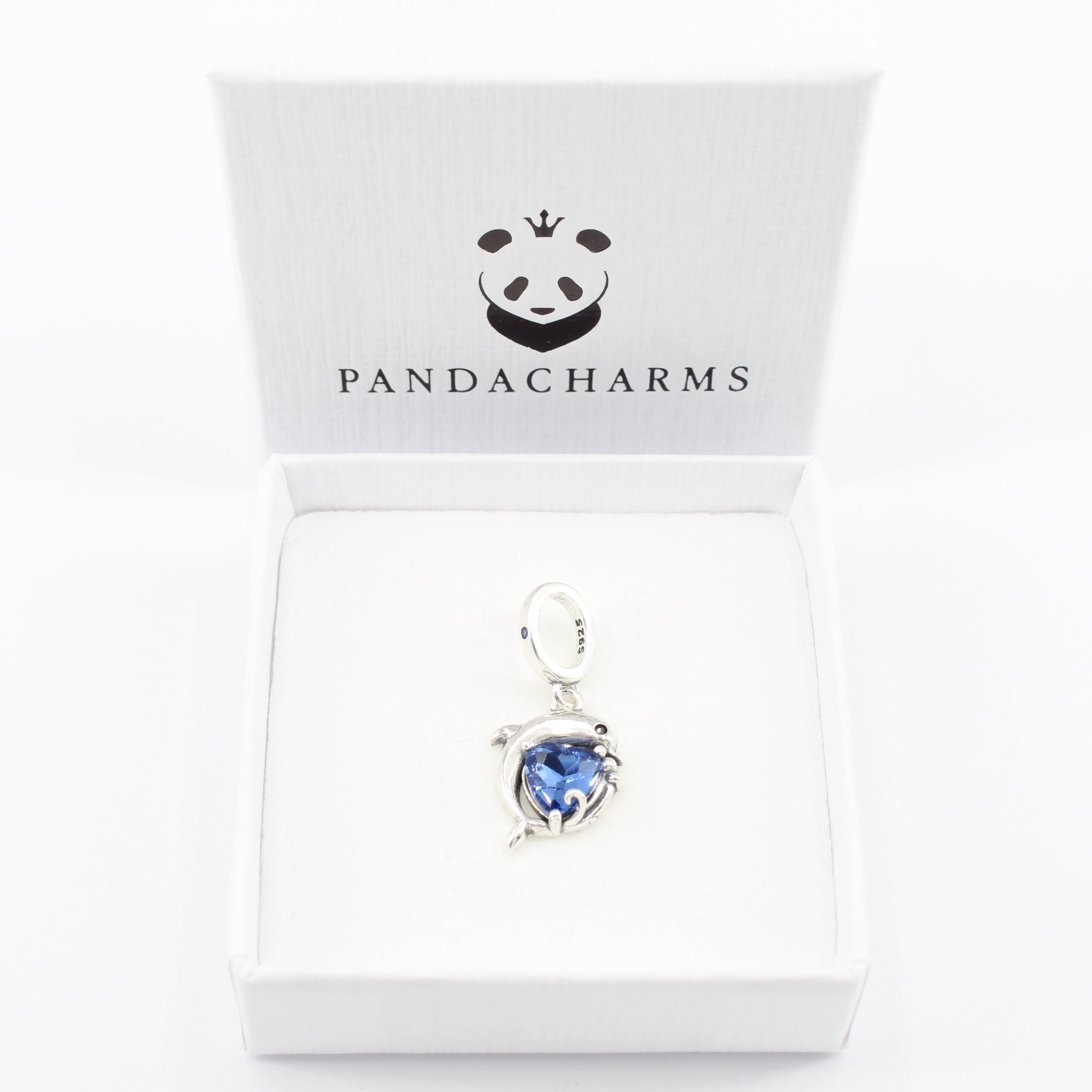 Delfin mit Blauem Herz Charm Anhänger – 925 Sterling Silber mit blauem Glas
