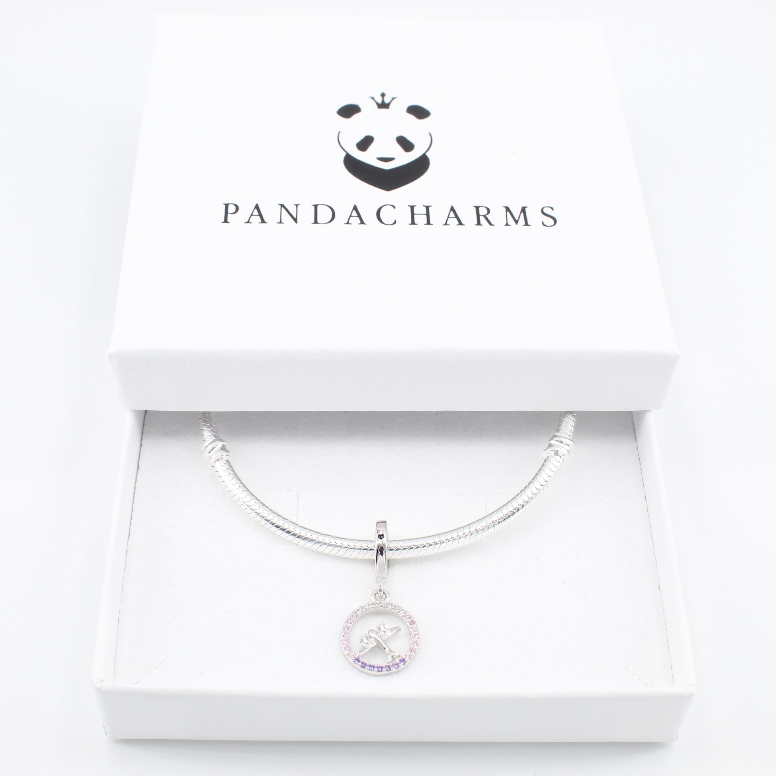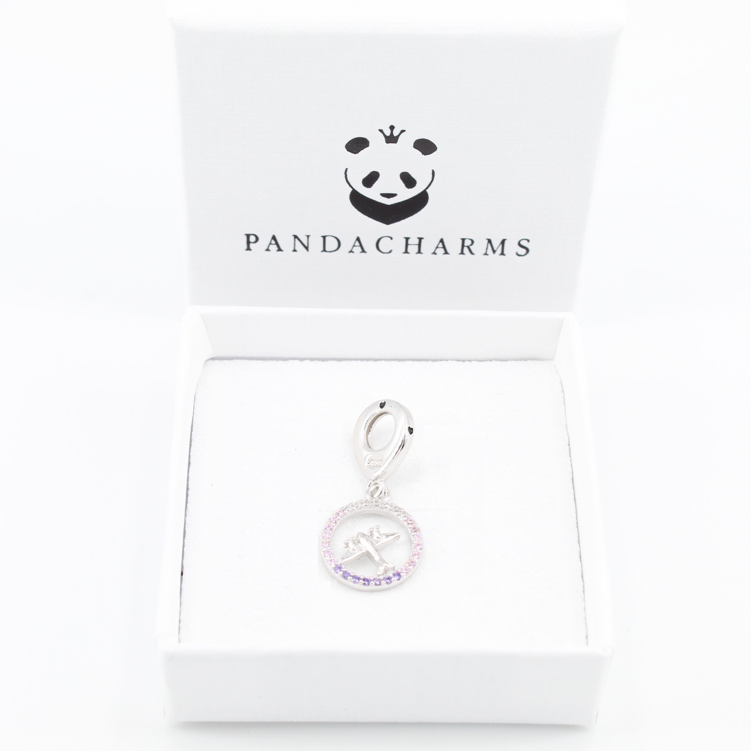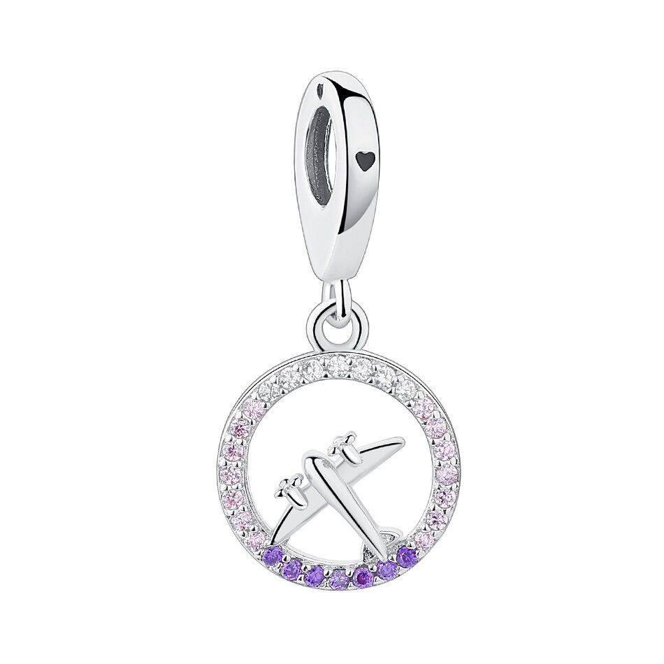 Wie nach einem langen Flug kurz vor der Landung bei Sonnenaufgang soll Dich dieser Flieger an Dein Ziel begleiten. Die vielen glitzernden Steine, die ihn einrahmen, in weiß, rosa und lila, machen den Anhänger zu einer feinen Zierde für Dein Armband mit Pastelltönen und leichten Farben. Immer wieder schön anzuschauen.