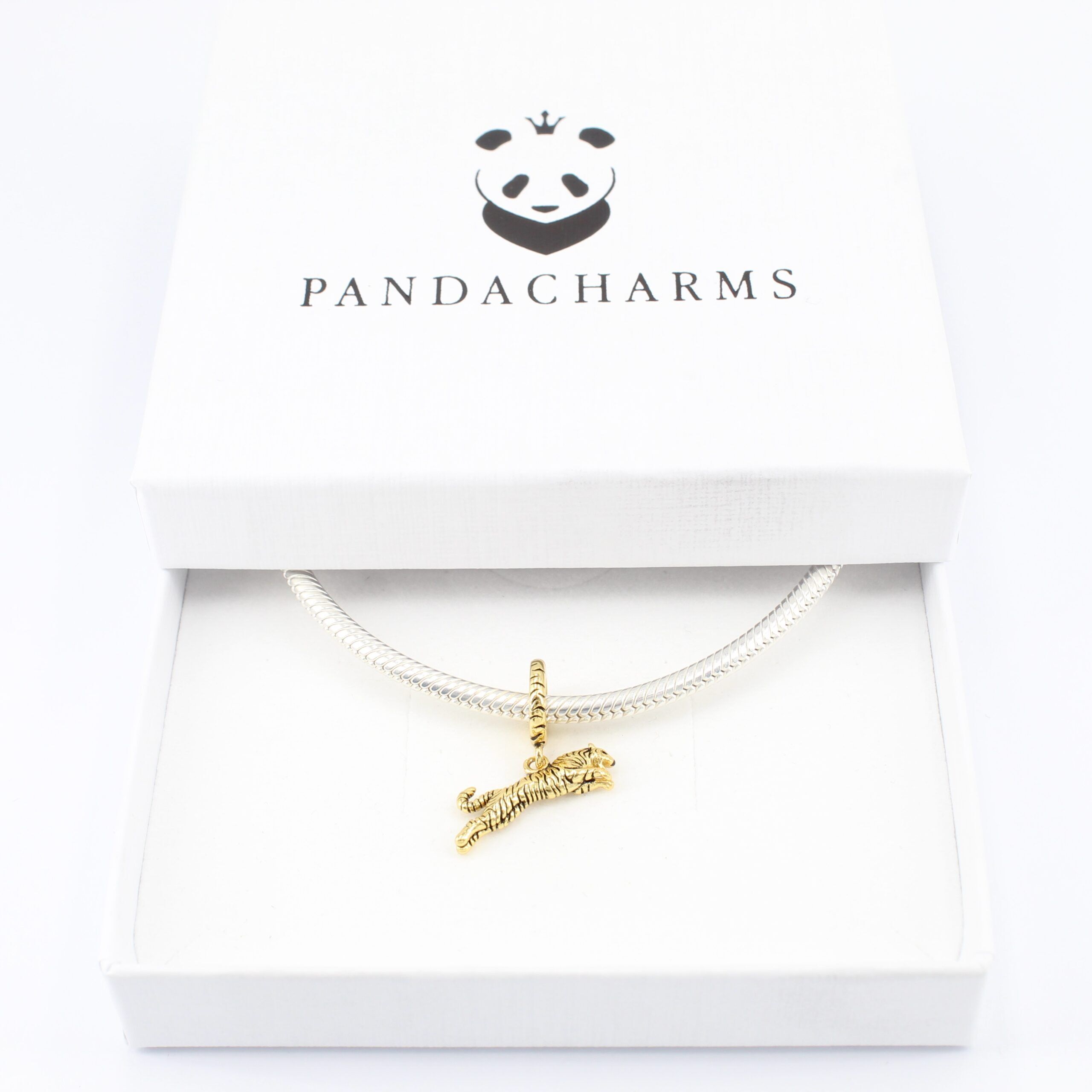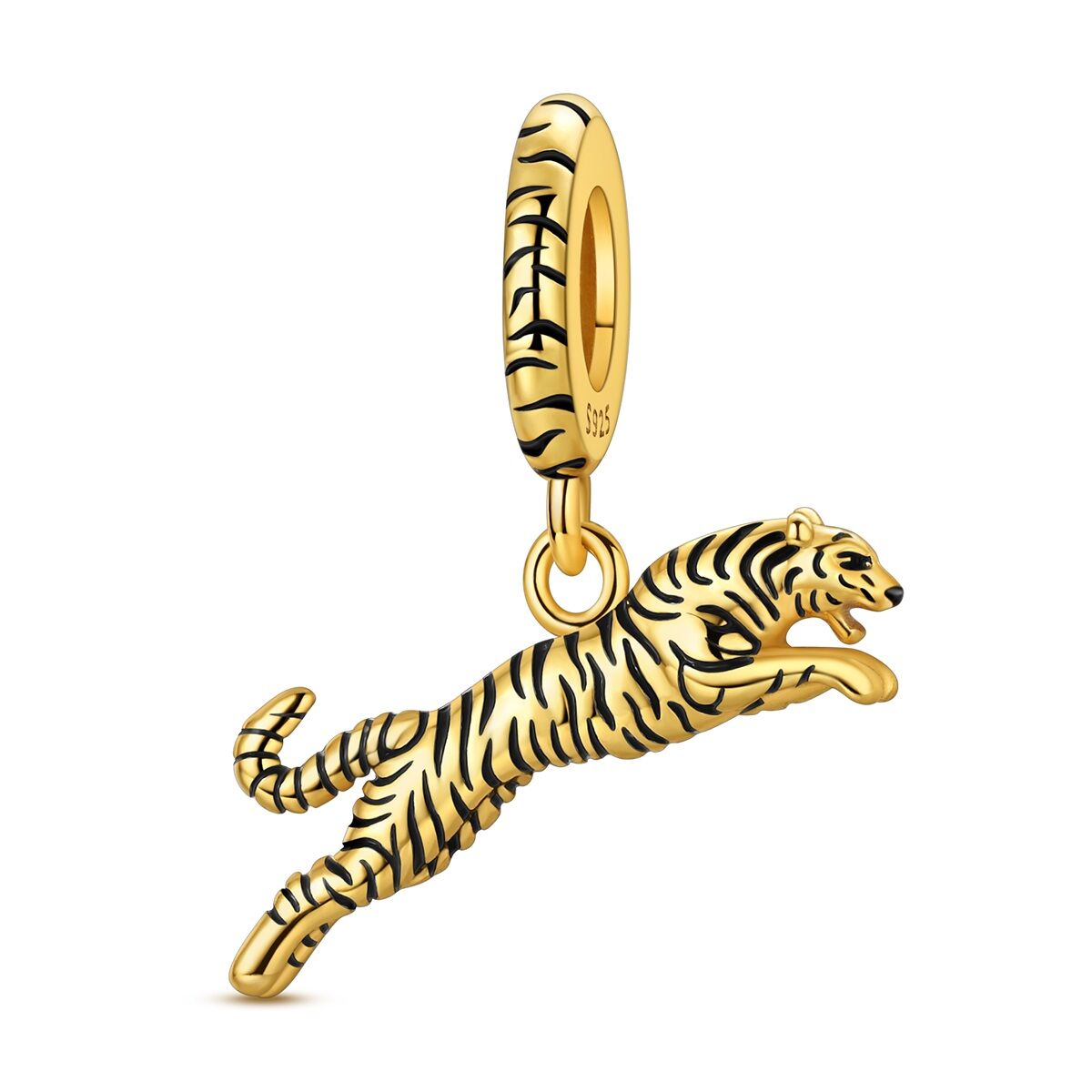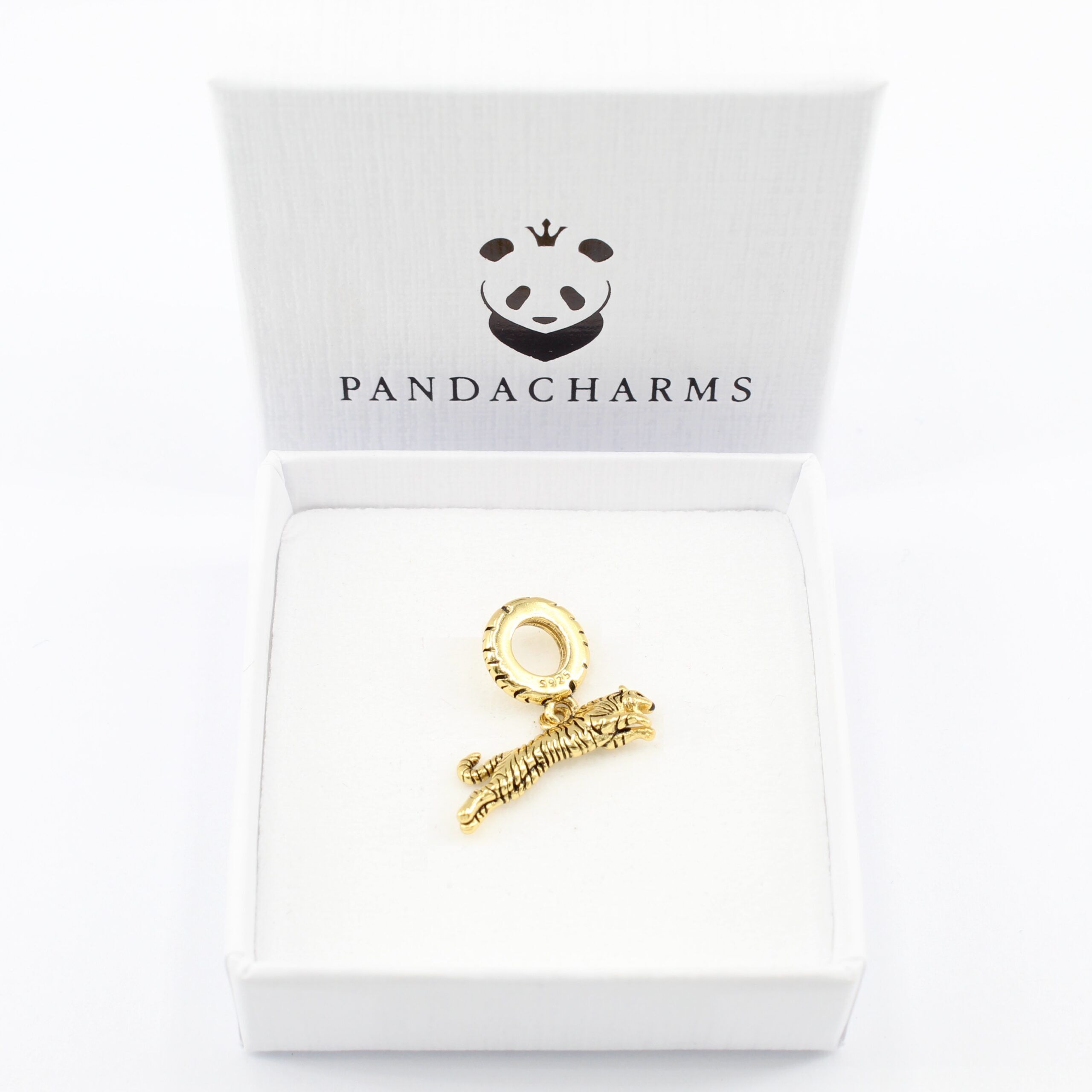 Goldener Tiger Charm Anhänger – 925 Sterling Silber vergoldet im kraftvollen Tiger-Design