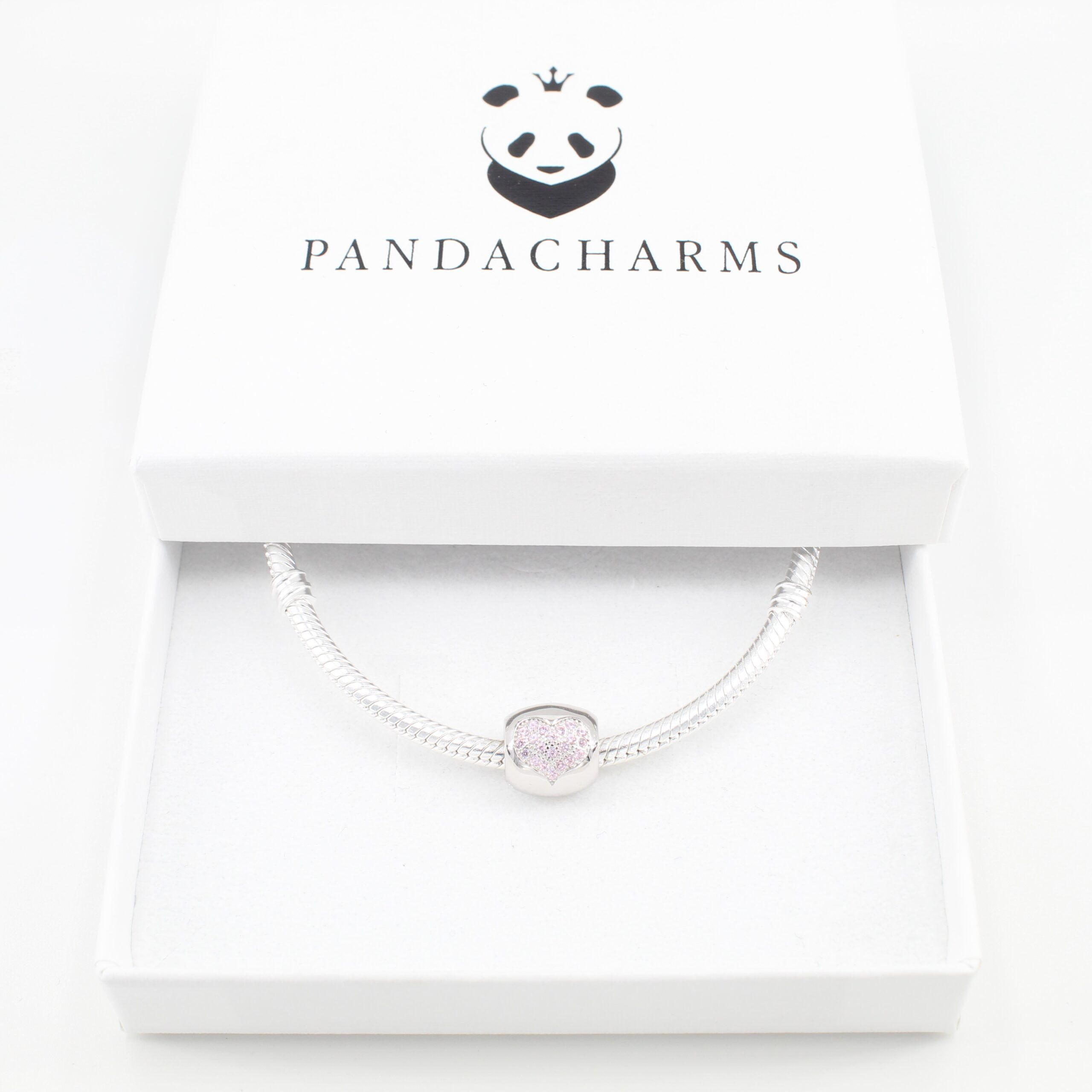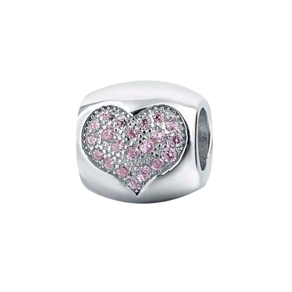 Auffällig und elegant kommt dieser massive Charm daher. Mit zwei eingearbeiteten Herzen, die wiederum mit rosa funkelnden Steinen in Herzform doppelt ausgelegt sind. Eine wahre Augenweide an jedem Armband in zarten Pastelltönen.