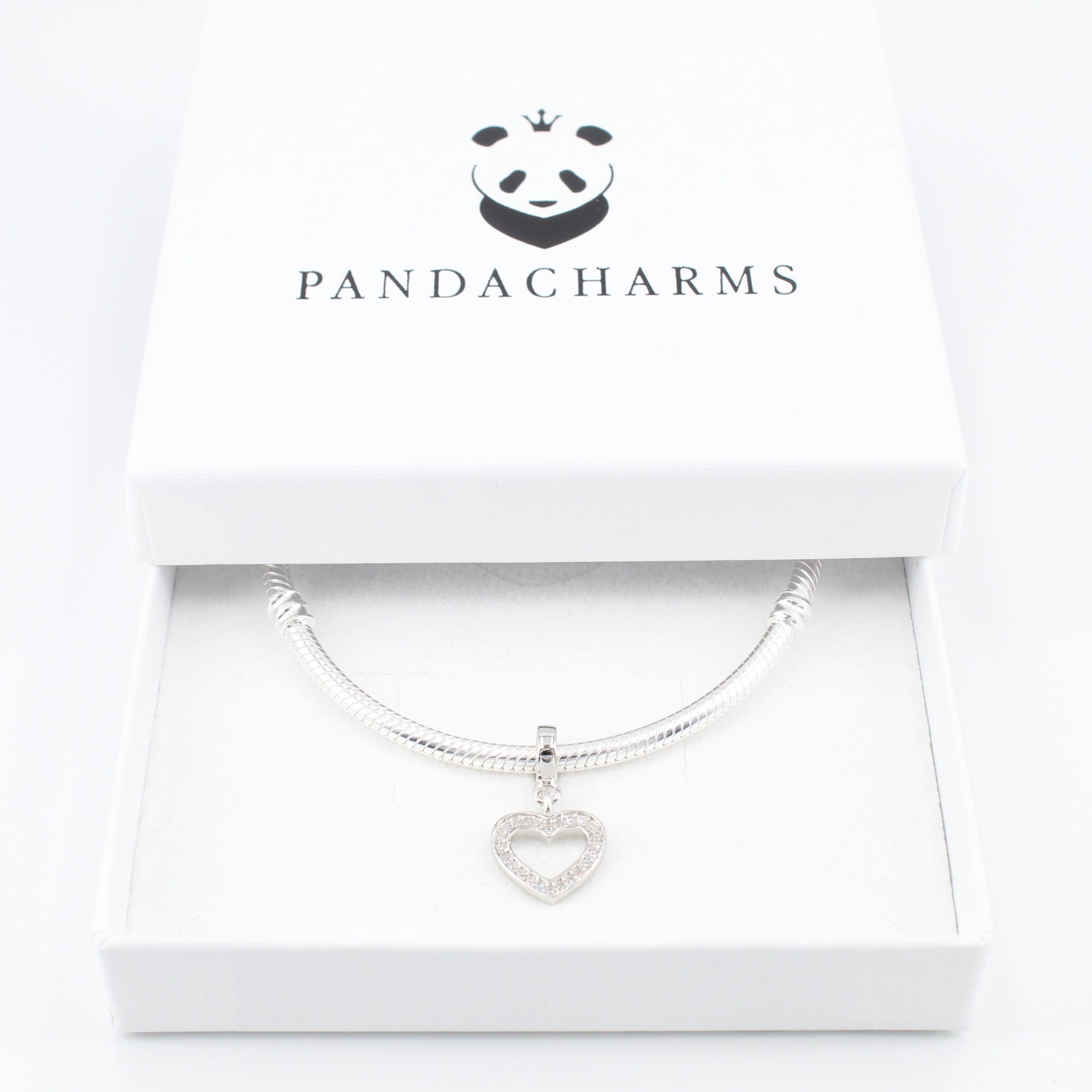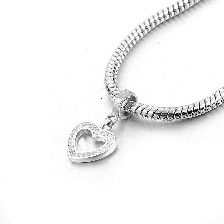 Ein Herz mit Steinen, ein Herz aus Steinen. Luftig und elegant passt es zu allen Charms mit vielen weißen Steinen und ragt als Zeichen der Liebe unter ihnen heraus.