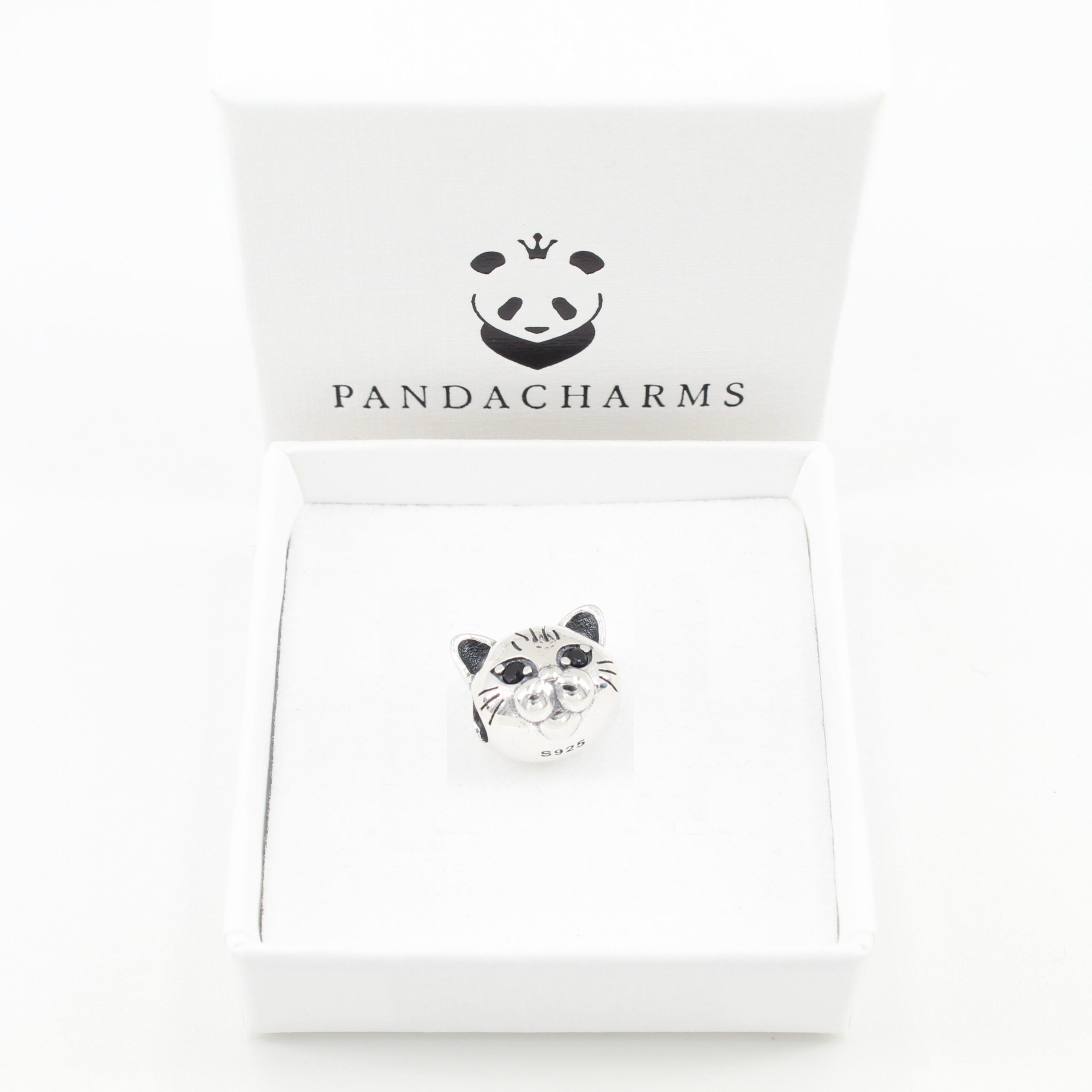 Dieser schwere Charm aus massivem 925er Sterling Silber steht eindrucksvoll für die Liebe zu Deiner Katze und die Liebe Deiner Katze zu Dir! Die Augen in Form von eingefassten schwarzen Steinen schauen Dich eindrucksvoll an, in freudiger Erwartung Eures baldigen Wiedersehens.
