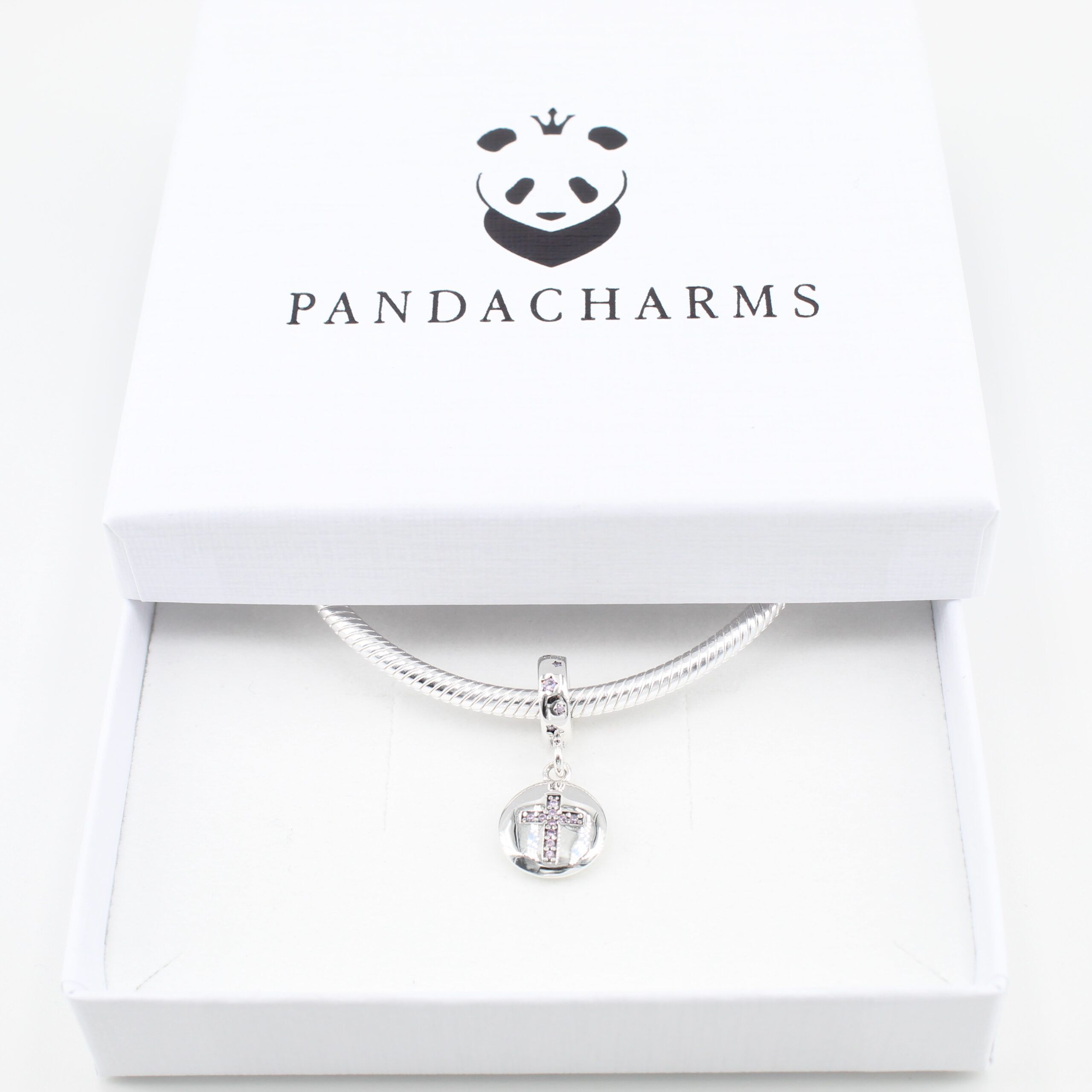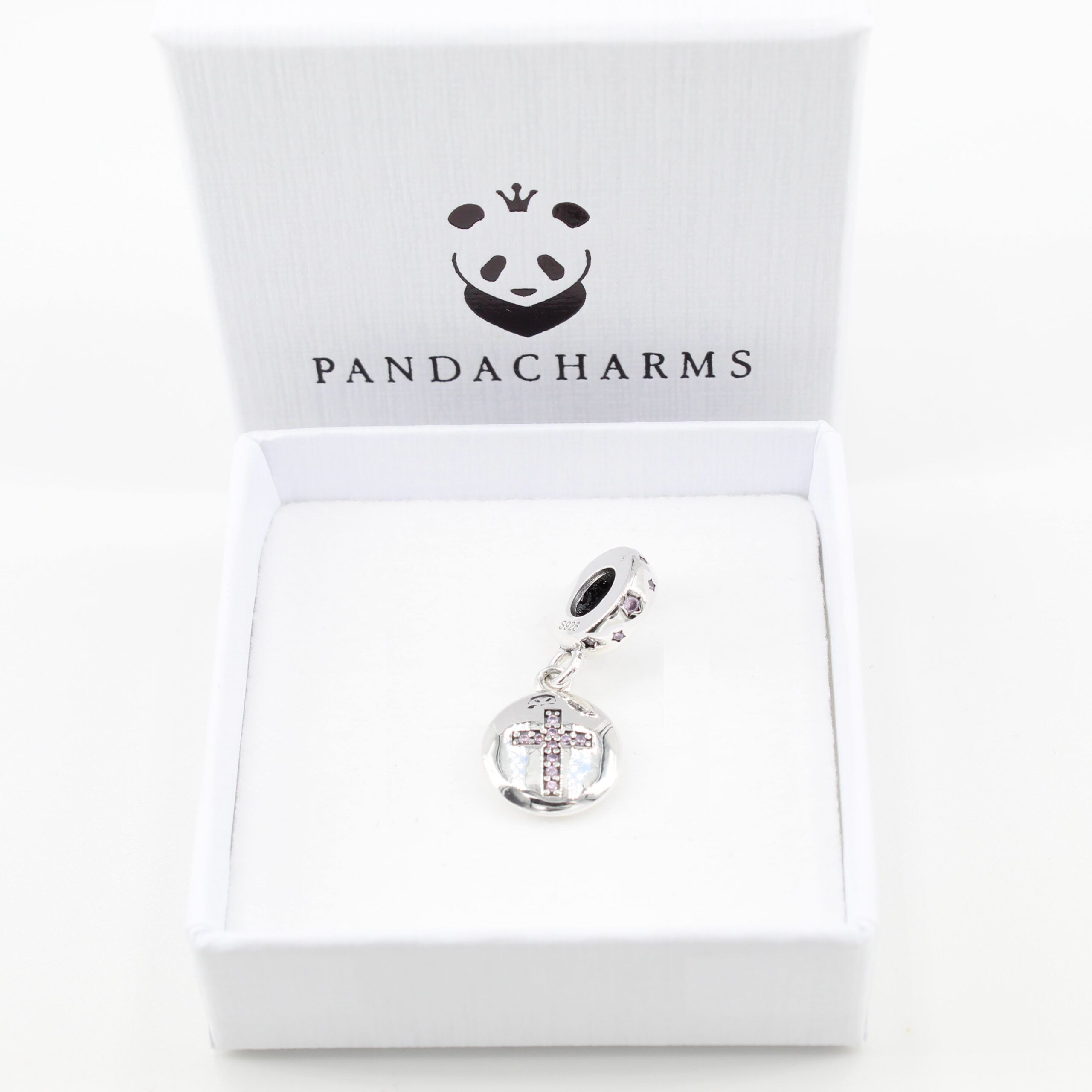 Lateinisches Kreuz mit Rosa Steinen Charm Anhänger