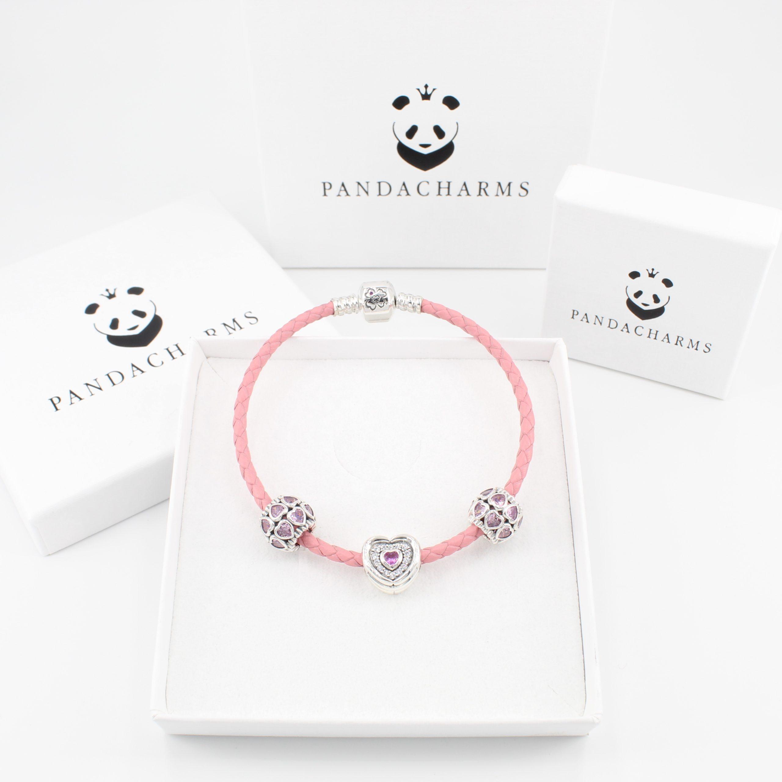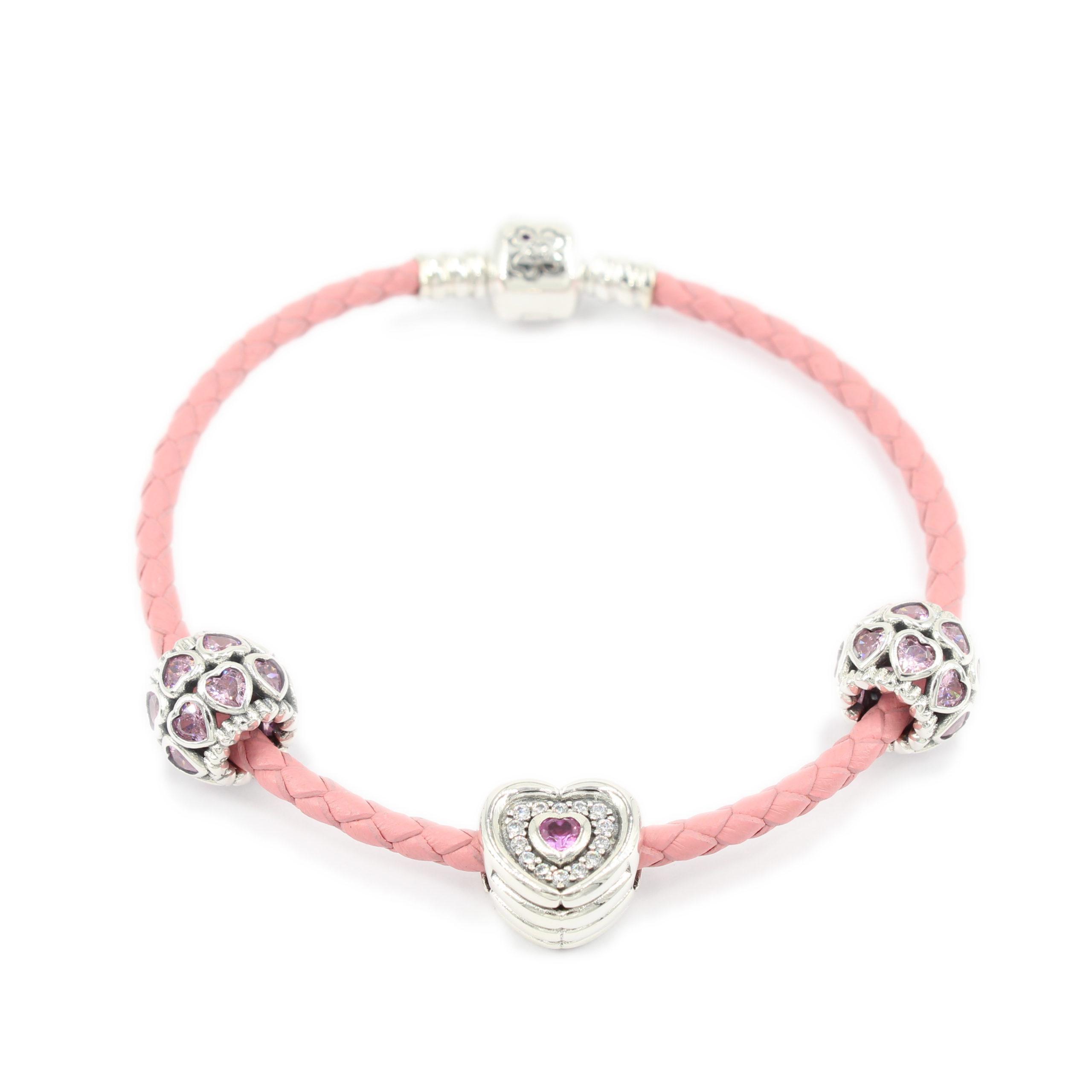 Leder Armband mit Charms Set ENDLESS PINK LOVE