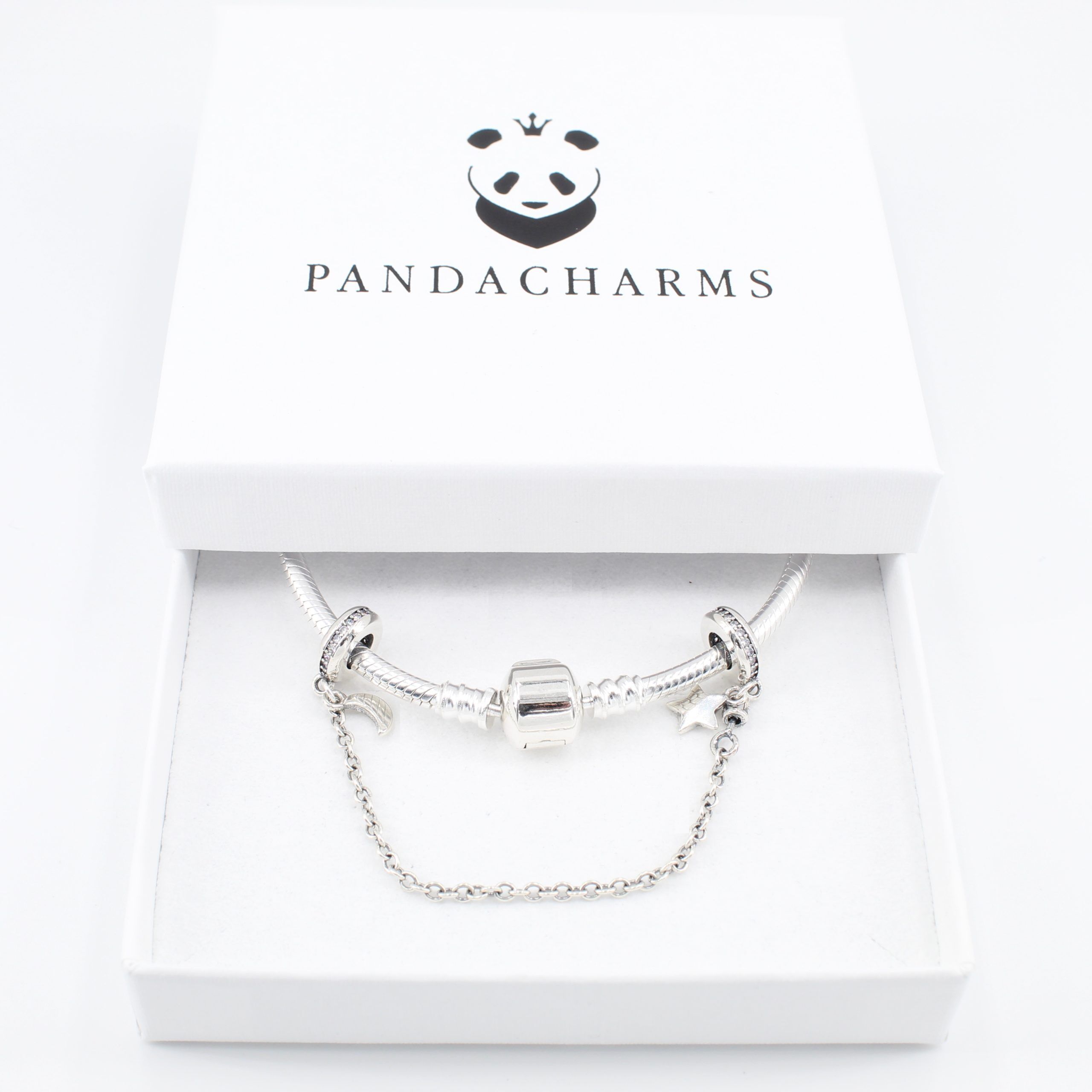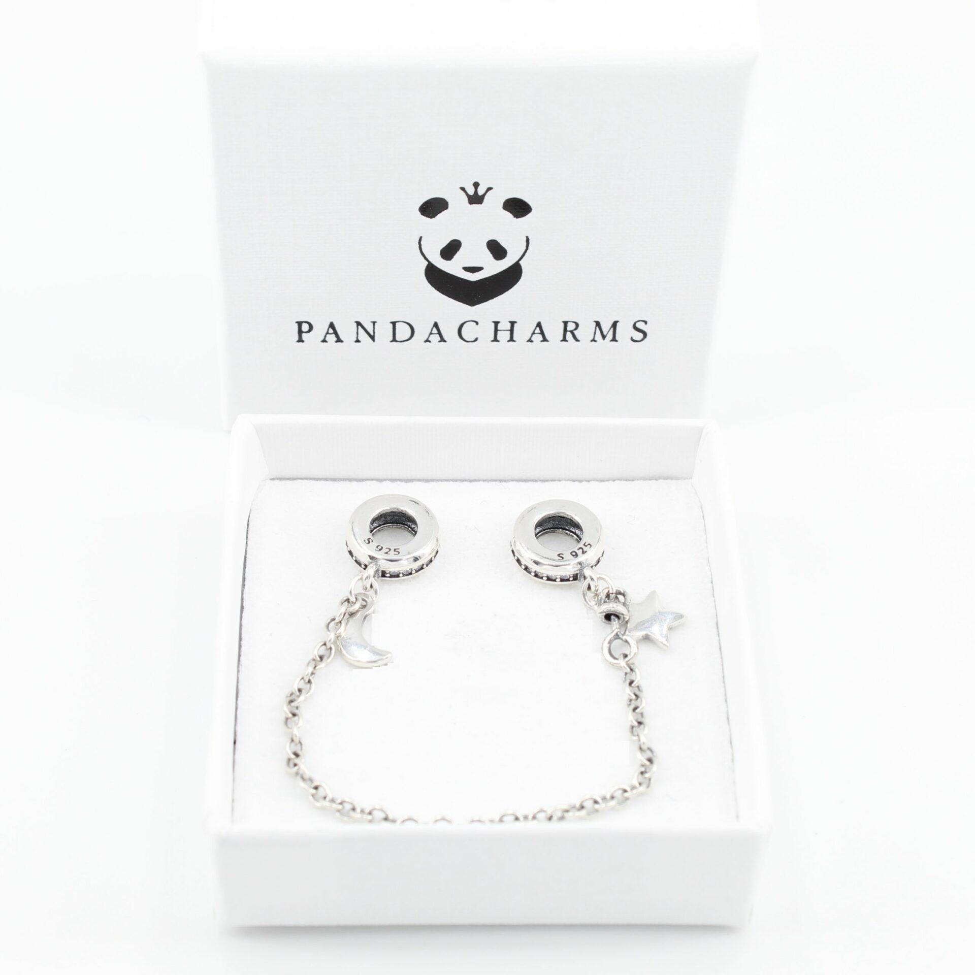 Sicherheitsketten bestehen aus zwei Elementen, die mit einer Kette verbunden sind. Die Elemente werden jeweils als erstes und letztes auf das Armband aufgefädelt. Sie verhindern das Herabfallen der Charms oder auch das Verlieren des Armbands bei einem unbeabsichtigten Öffnen. Die Sicherheitskette passt für alle Armbänder aus Silber und Leder.
