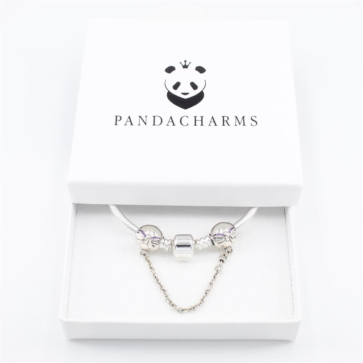 Verziert mit kleinen Steinen in zurückhaltendem Lila passt diese Sicherheitskette zu Deinem Armband mit vielen anderen großen Charms in allen Farben. Ein schöner Anfang und Abschluss für jedes eindrucksvolle Charm Armband.