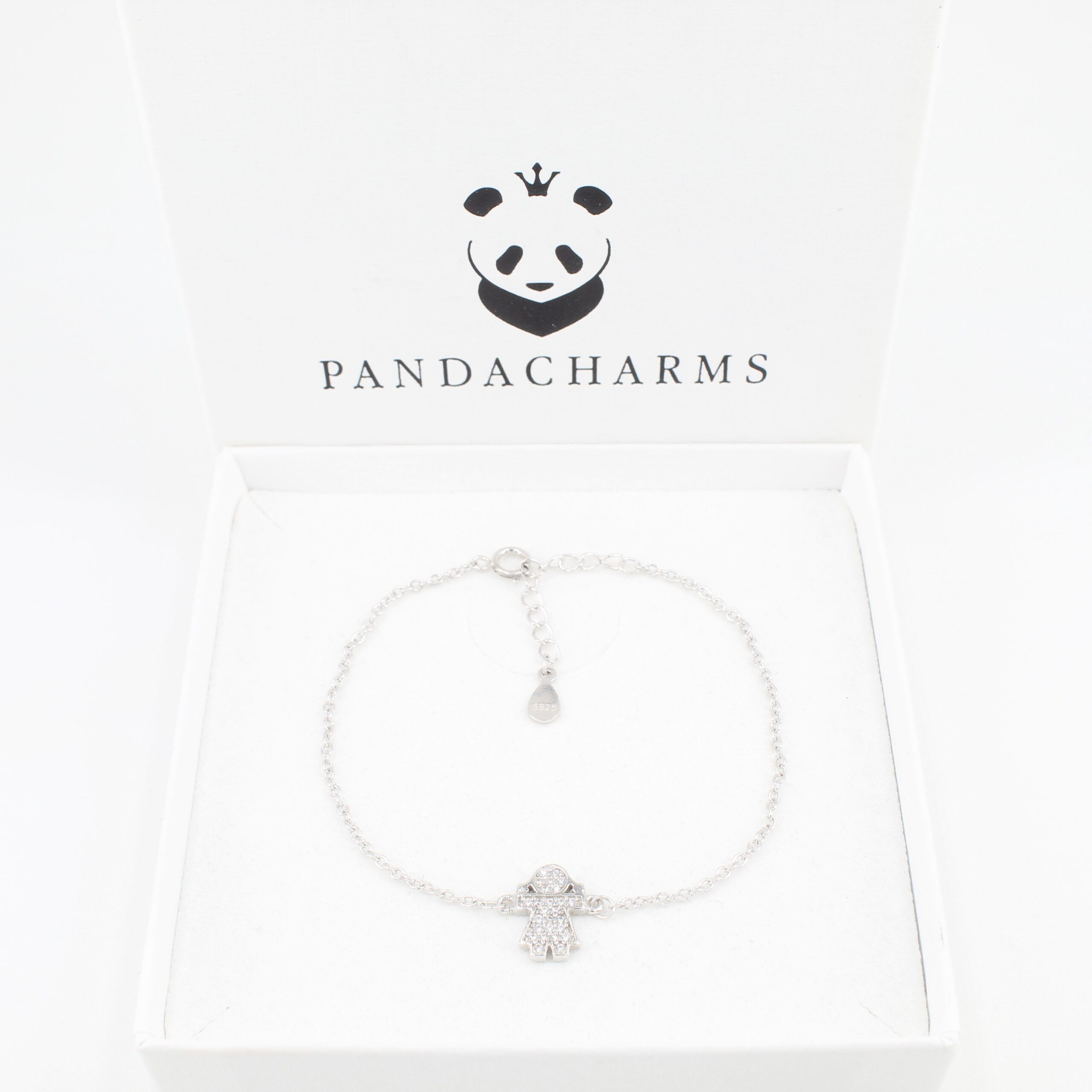 Silber Armband Armkettchen Engelchen, sehr feingliedrig und liebevoll aus 925er Sterling Silber mit vielen Zirkonia Glitzersteinen gefertigt. Die Länge lässt sich durch die Verlängerung variabel anpassen von 16-18cm. Passt zu allen Gelegenheiten, zum Sport genauso wie am Abend. Zierlich und trotzdem durch die vielen funkelnden Steine auffällig elegant und eine Zierde für jedes Handgelenk. Das zentral angebrachte Engelchen ist liebevoll mit vielen funkelnden Zirkonia Steinen verziert.
