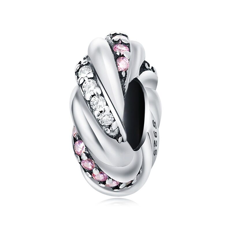Das Spirale mit Steinen Stopper Zwischenelement vereint stilvolle Eleganz mit praktischer Funktion. Das kunstvoll gedrehte Design in Spiralform wird von funkelnden weißen und zarten rosa Zirkonia-Steinen verziert und sorgt für einen edlen Blickfang an Deinem Charm Armband.