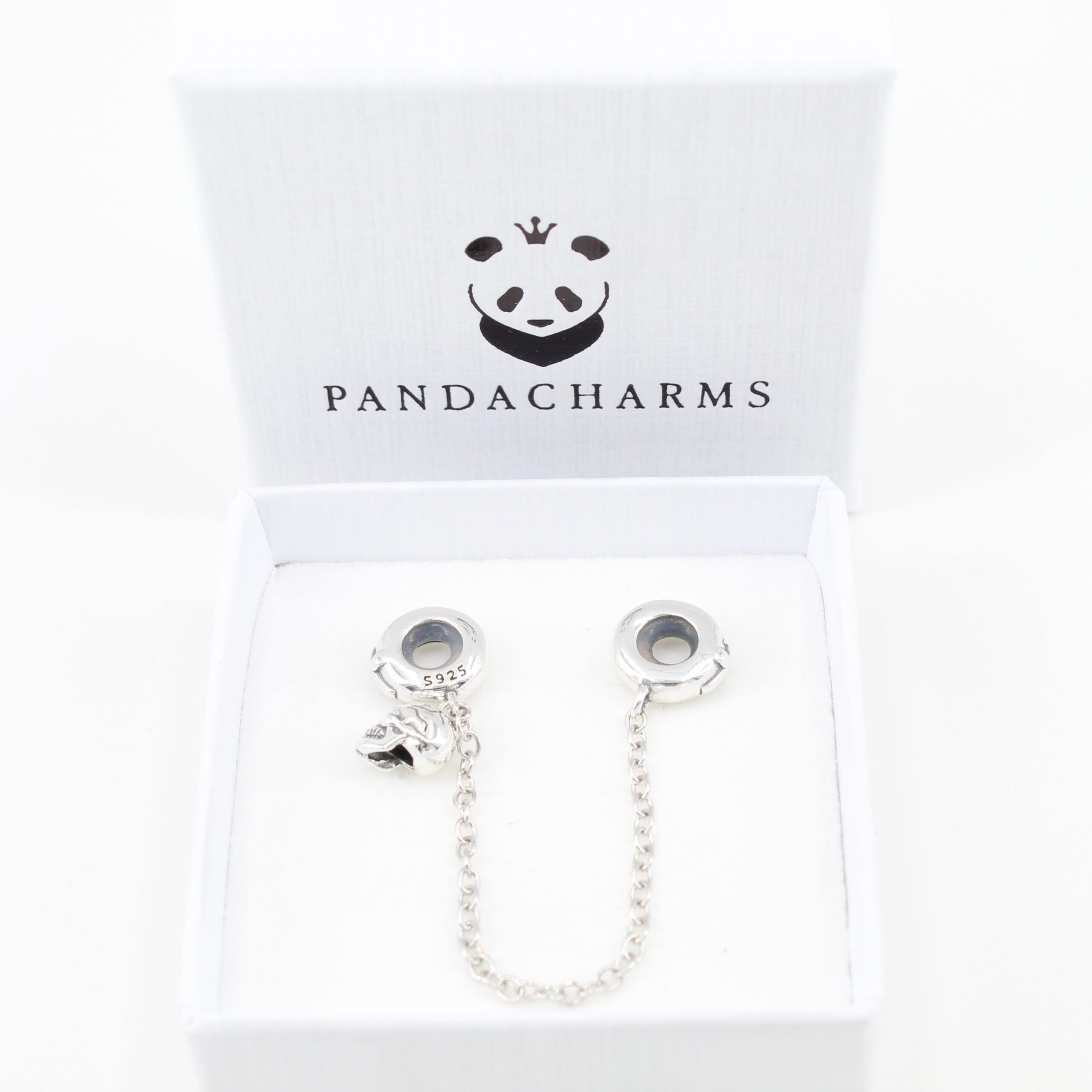 Sicherheitsketten bestehen aus zwei Elementen, die mit einer Kette verbunden sind. Die Elemente werden jeweils als erstes und letztes auf das Armband aufgefädelt. Sie verhindern das Herabfallen der Charms oder auch das Verlieren des Armbands bei einem unbeabsichtigten Öffnen. Die Sicherheitskette passt für alle Armbänder aus Silber und Leder. Bei Armbändern und Armreifen mit Gewinden müssen die Stopper mit etwas Kraft über die Gewinde gedreht werden, da sie mit innenliegenden Silikonkernen versehen sind. Hierdurch werden die Elemente auf den Armbändern an ihrem Platz gehalten.